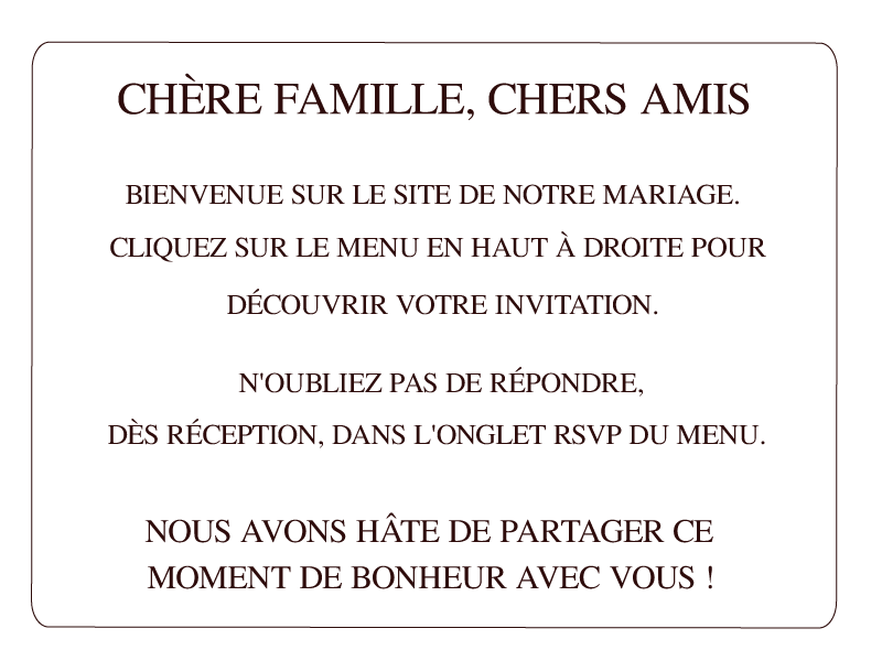 Nous espérons que vous trouverez l’hébergement idéal pour être à nos côtés lors de notre mariage.